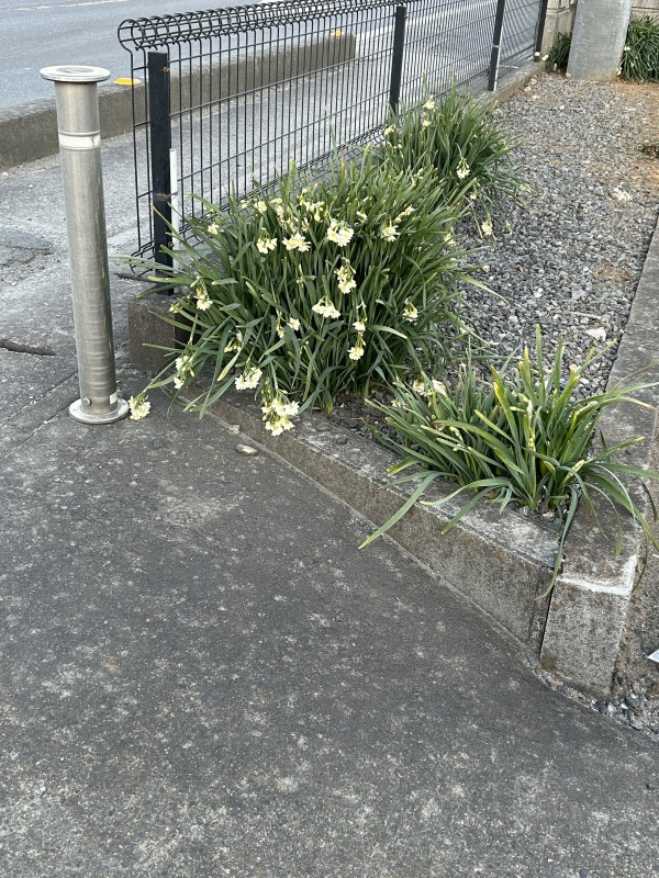 施設のお庭で水仙が寒さに負けずに咲いているではないですか(T_T)