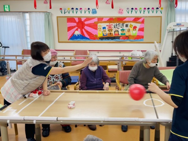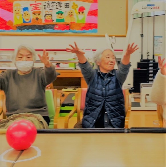 慣れてくるとお手玉1個から2個投げて行う方もいらっしゃいました。数で攻めてますねー?
