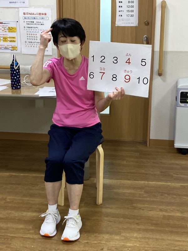 本日の日付や曜日など手と脳を使った体操を行ないました。