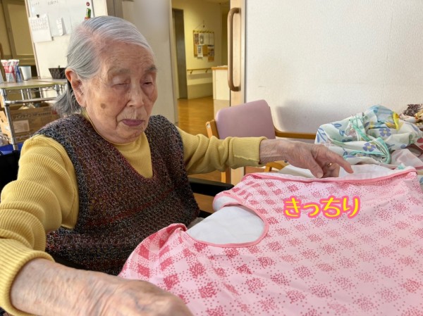エプロンをたたみながら