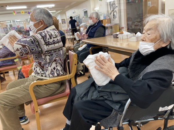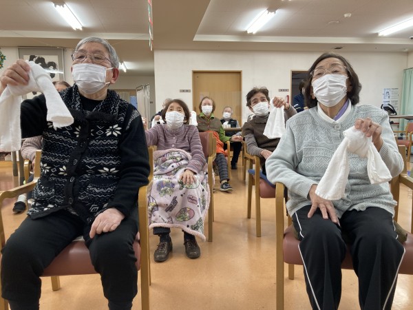 タオル体操は今やすっかり人気の運動教室です。今回も皆様元気に参加されました!