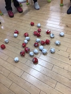 赤チームは赤玉だけを、白チームは白玉だけを、より分けて手元まで引き寄せるゲームです。
