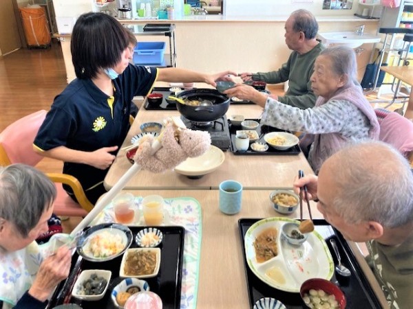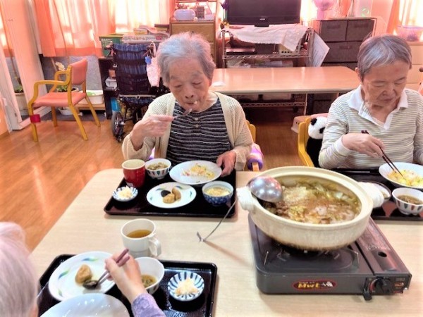 横浜三保2でも、今日のお昼に、大根おろしタップリをのせて、ポン酢しょうゆ鍋を利用者と作りました。