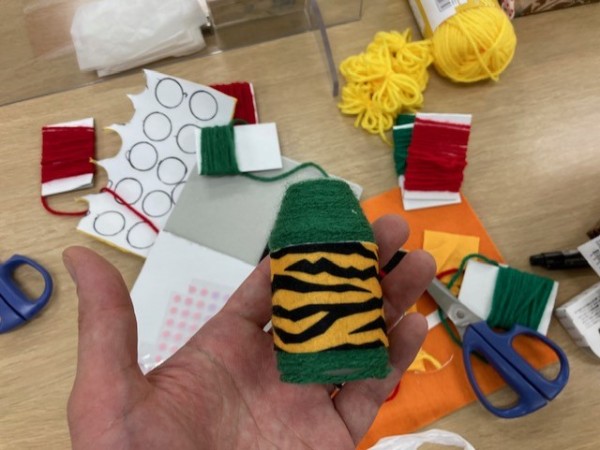 仕上げに虎柄フェルトと、顔のパーツを付けたら
