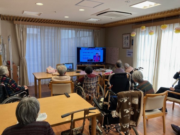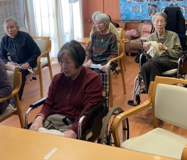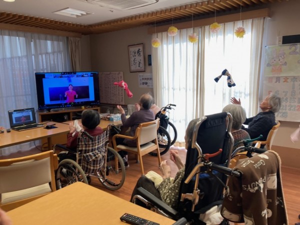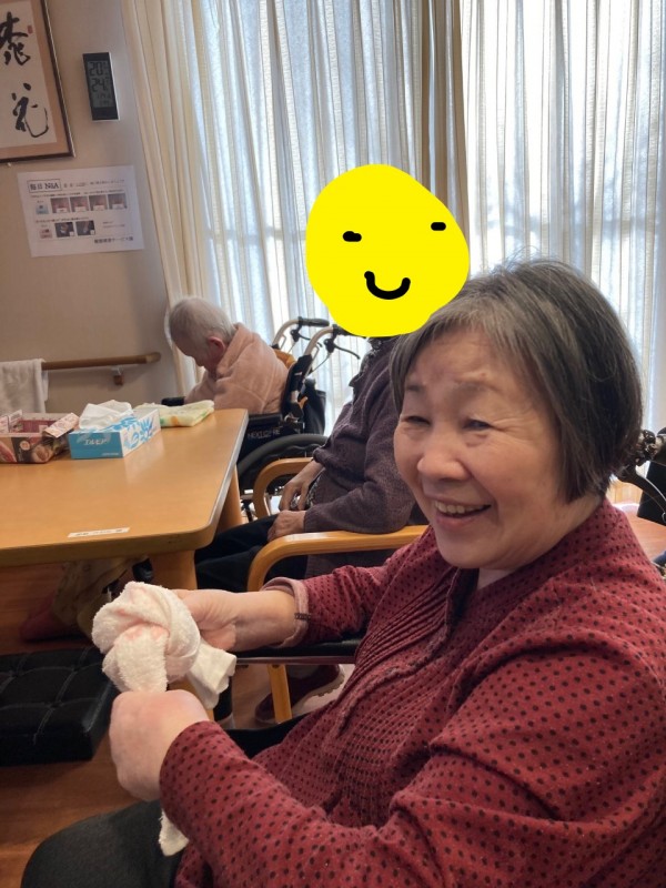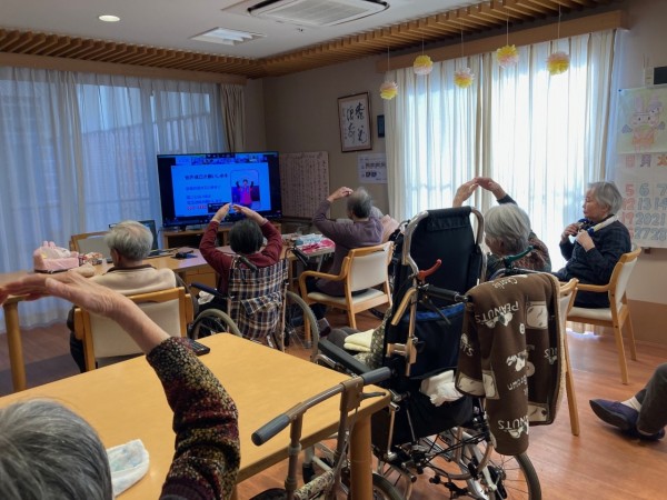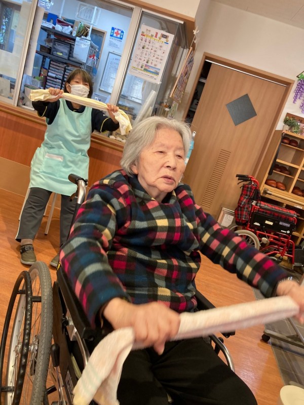 1階2階合同にて、リモートによる、タオルを使用したakストレッチ体操を始めて行いました( *´艸`)