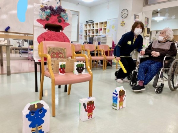 鬼がやってきて、皆で豆まきをやりました(笑)