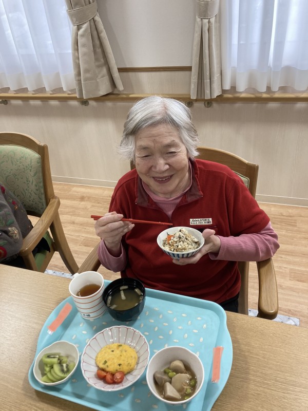 節分にちなんで昼食は大豆ごはんです❣️