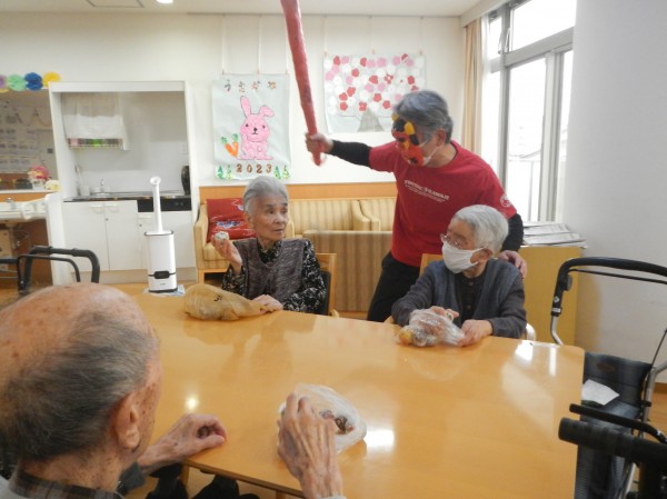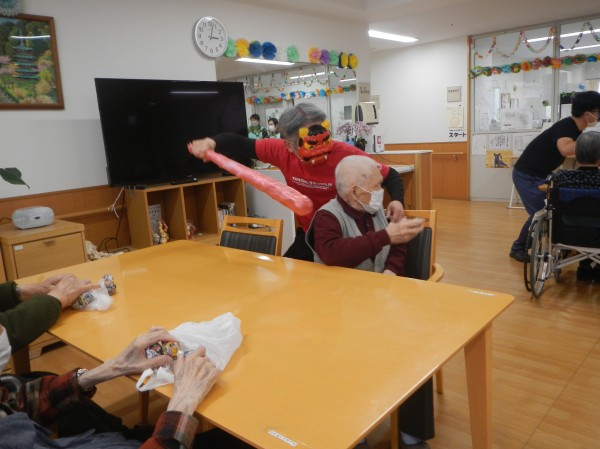 背中に疲労感の漂う赤鬼も、このチャンスの逃すまいと、ご利用者様のもとへ駆け寄りハイち~ず!と仲直り。