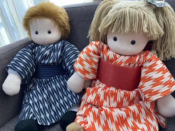 旦那様との思いでの着物をリメイクして人形用に作成されたようです。