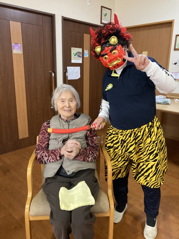 鬼役をしてくれた利用者C様。W職員。