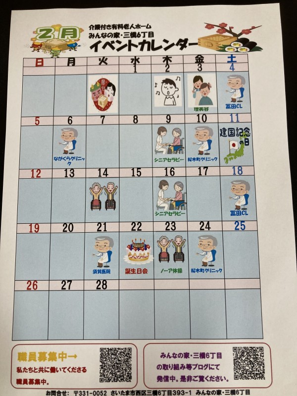 ★☆三橋6丁目の2月のイベントカレンダーが完成2023年(^^♬ 『みんなの家・三橋6丁目・介護ブログ』☆★
