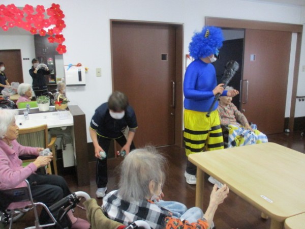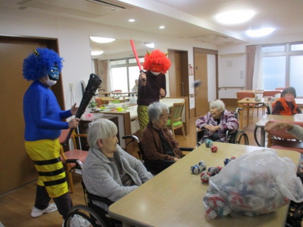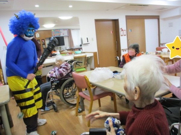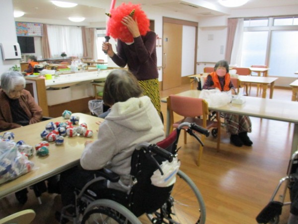 2月3日、内野本郷の施設では各階で【豆まき】を行いました(*^^*)