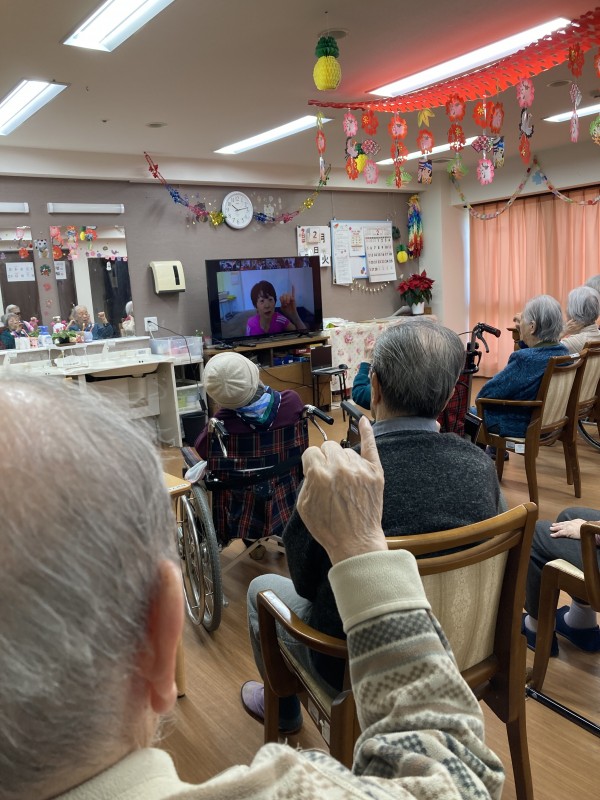 岡庭先生がリモートで「中野島の皆さ~ん♪」と呼びかけてくれて