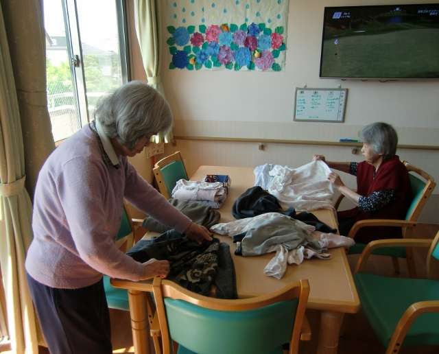 みんなの家・川崎多摩登戸の女性入居者様は、家事は日常の習慣と感じる方が多いようで、『乾いた洗濯物』や『食事の後の食器』を見かけると、自然にお手伝いに来てくださいます。