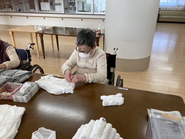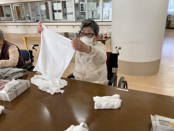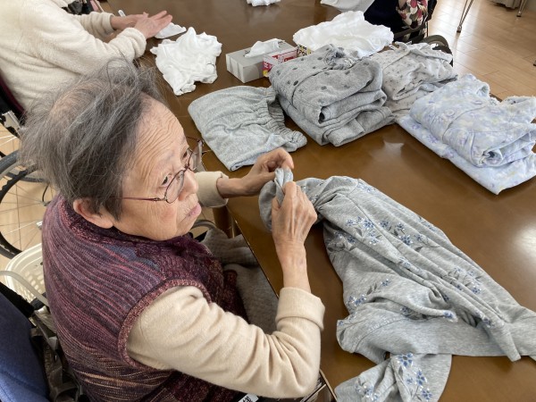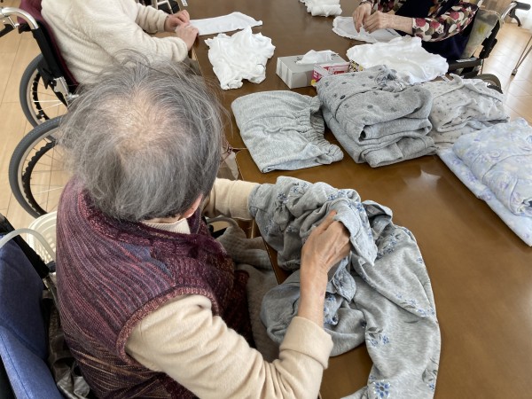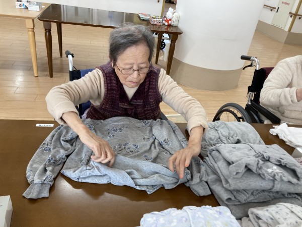 ご利用者様が集まり衣類を畳んで下さいます(#^^#)