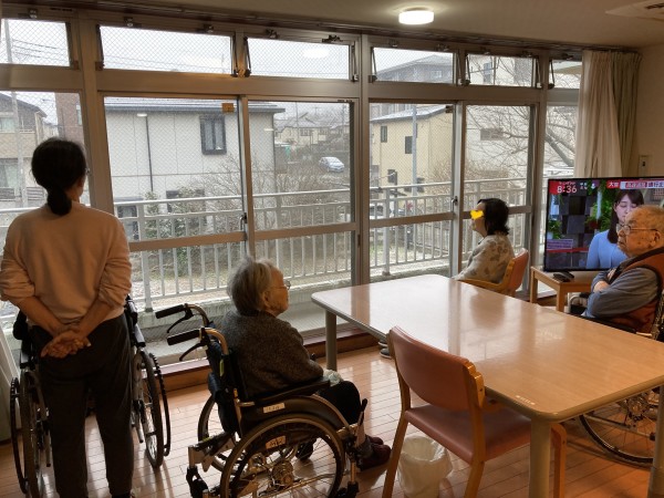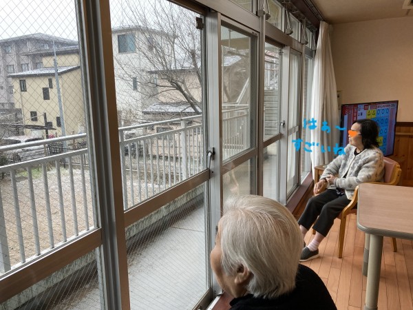 7時半過ぎに「雪が少し降ってきたよ!」というご入居者様の声に「えぇぇ?!」と、どよめくスタッフ(笑)