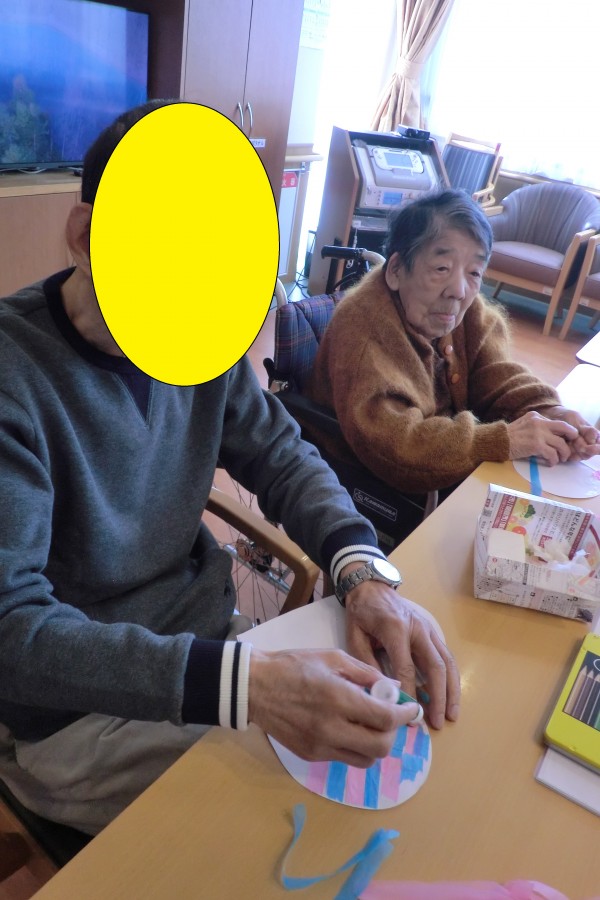 女性の利用者様が他の方にレクチャーしながら作品作りをされております。