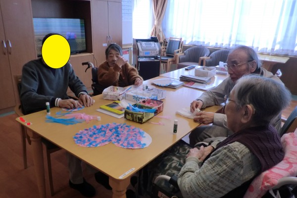 女性の利用者様が他の方にレクチャーしながら作品作りをされております。