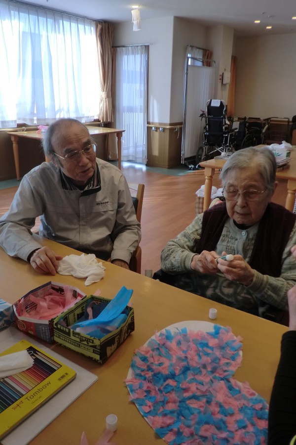 昼食を終えた午後の昼下がり、なにやら集まって何かを作っておりました。