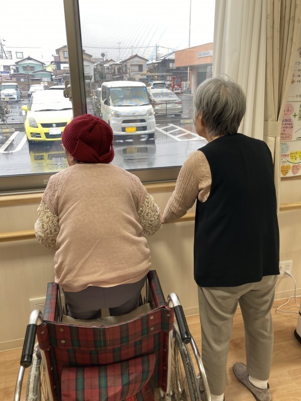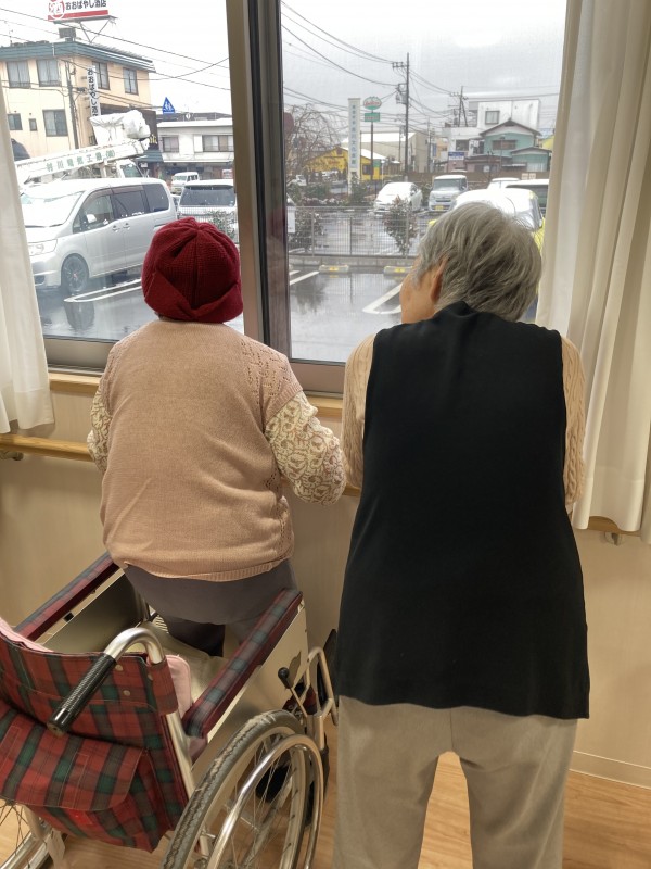 予報よりも早く降り始めた雪に、利用者様達が沸き始めました( ^∀^)