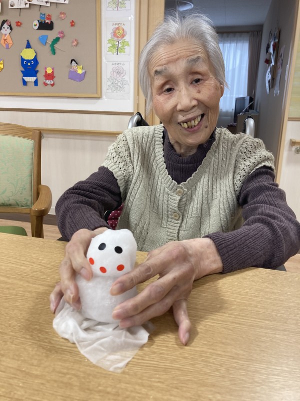 顔も作って〜っと、可愛い雪だるまさんが完成しました♪