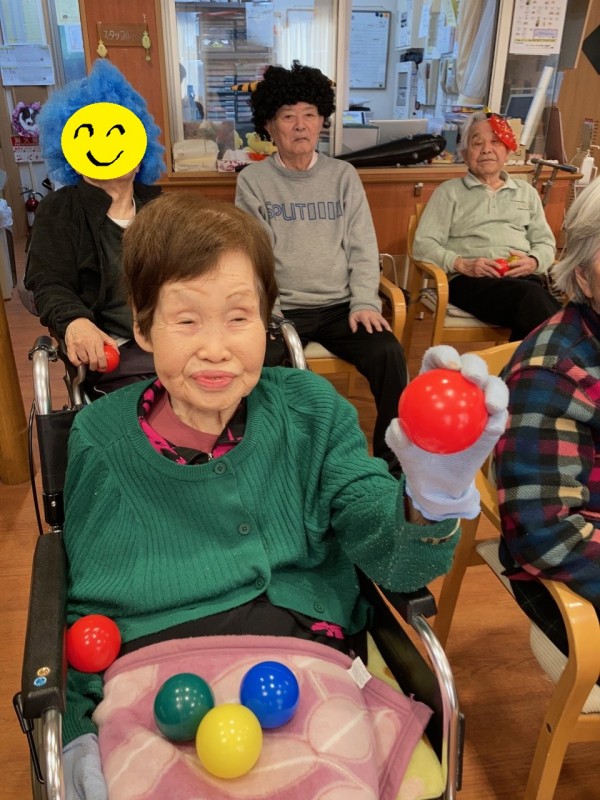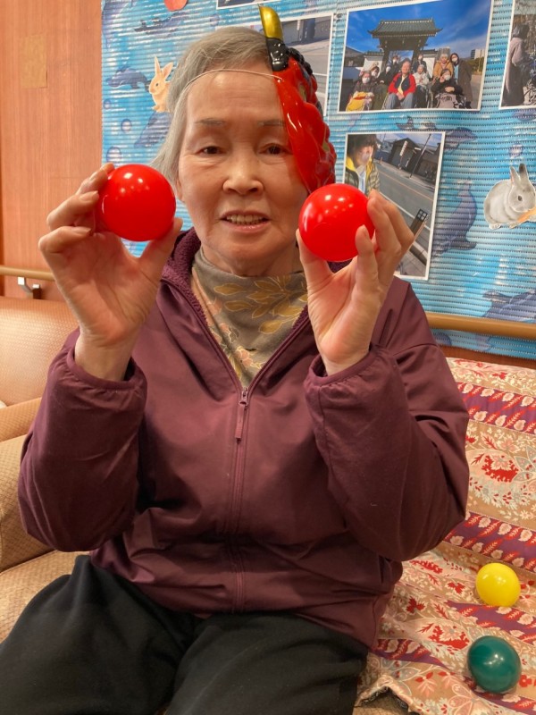 豆を見立てた、ボールに、的のかわいい鬼が倒れるまで、皆様、ボールをぶつけました( *´艸`)