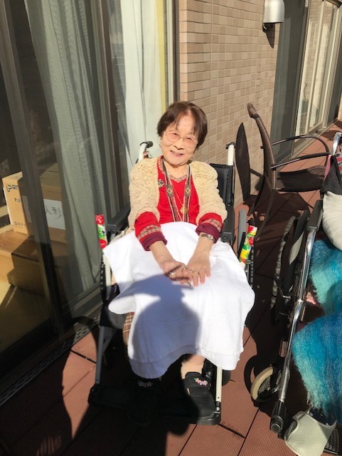 この日はすかっと晴れたこともあり、ご入居者様に日光浴を楽しんでいただきました。