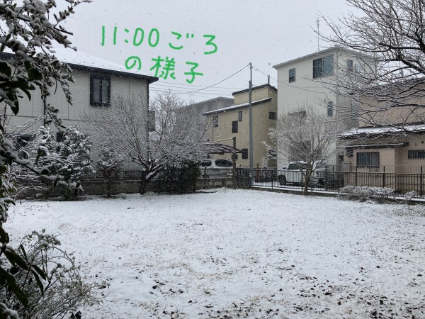 お昼ごろの雪は、芝生が少し見えなくなってきた程度でしたが、