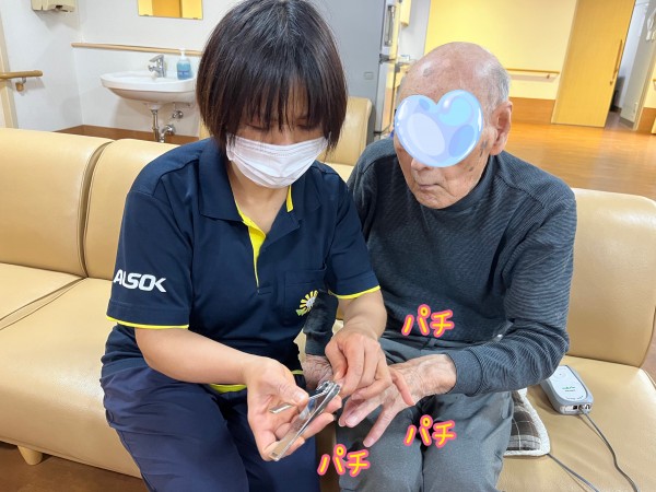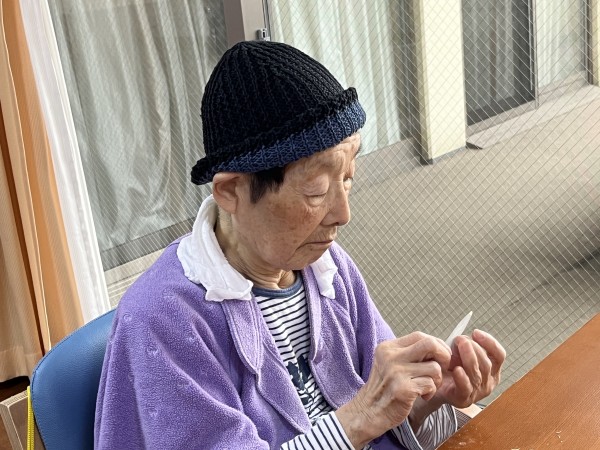ケアスタッフの桧山さんが、爪切りをしてくれます。