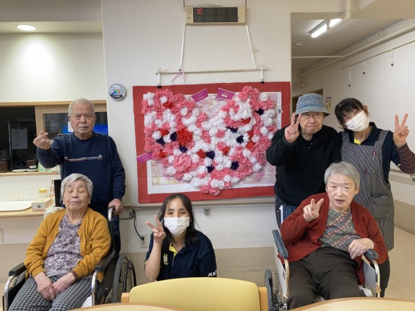 皆さんと作った大きなハートの前で指♡を作ってハイポーズ☻