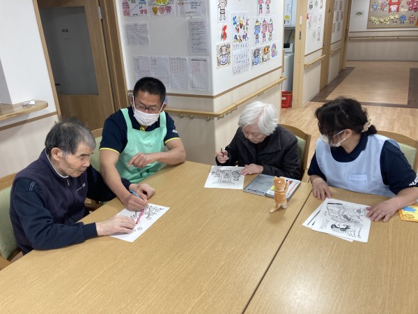 職員と一緒に塗り絵やパズルをしたり、新聞を読まれたり、ゆったりとお過ごしですね❤️