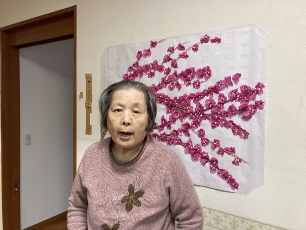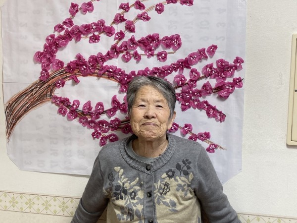 利用者様も「キレイな桜ね!」「もうすぐ春」と笑顔で談笑をし、壁画の前でも素敵な笑顔となりました(#^.^#)