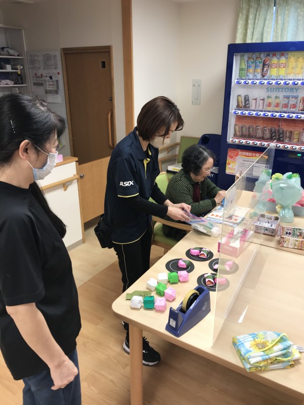 先日おやつレク等のイベントがあった午前にスタッフと利用者が折紙を作成していました