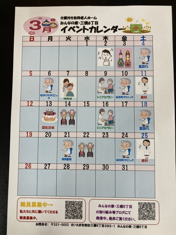 ★☆三橋6丁目の3月のイベントカレンダーが完成2023年(^^♬ 『みんなの家・三橋6丁目・介護ブログ』☆★