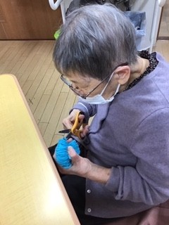 ポンポンを作るため糸を切ります!