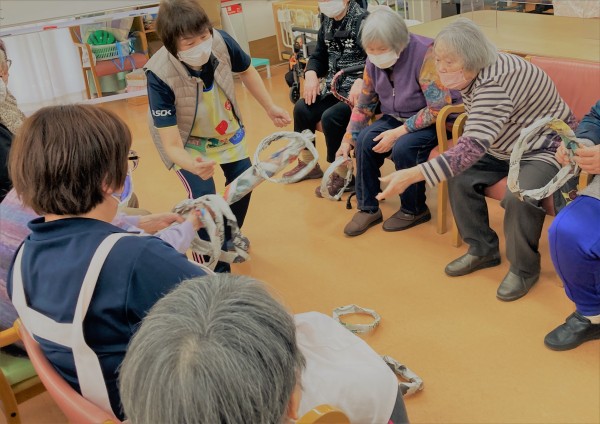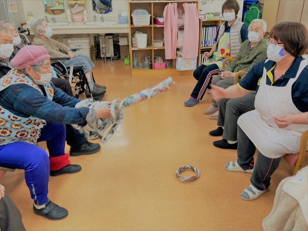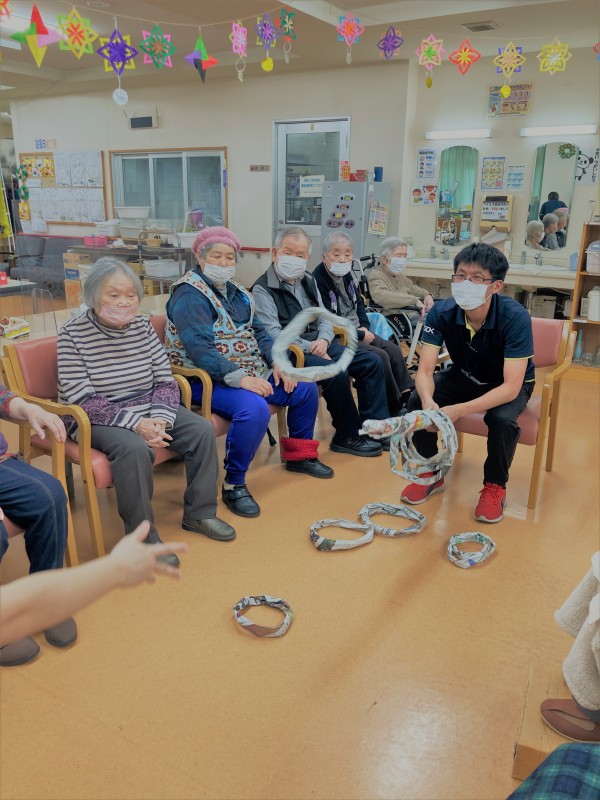 本日は新聞紙ゲームを行い、その中で特に白熱した展開となった「新聞紙輪っかゲーム」の模様をお送りします♪