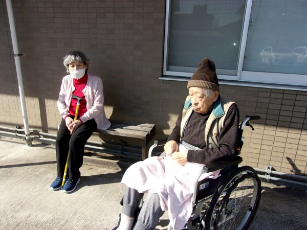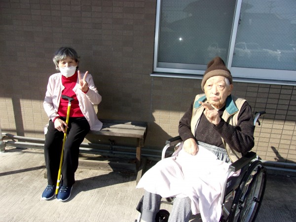 午後の時間に入居者様に声掛けし散歩&日向ぼっこをしに外へ出ることにしました(^O^)/
