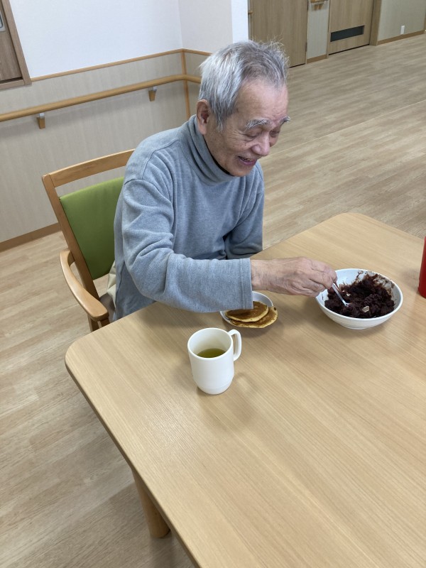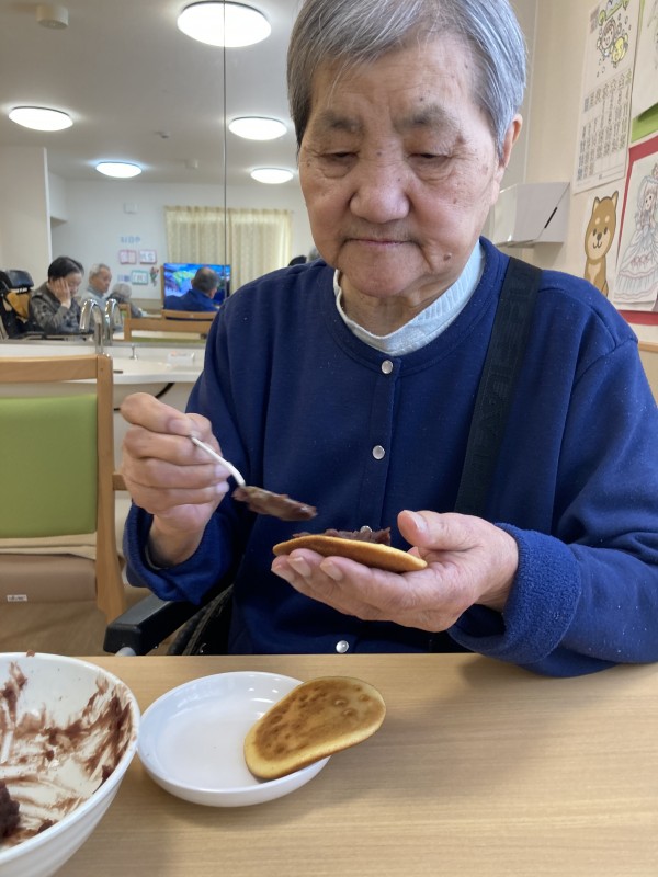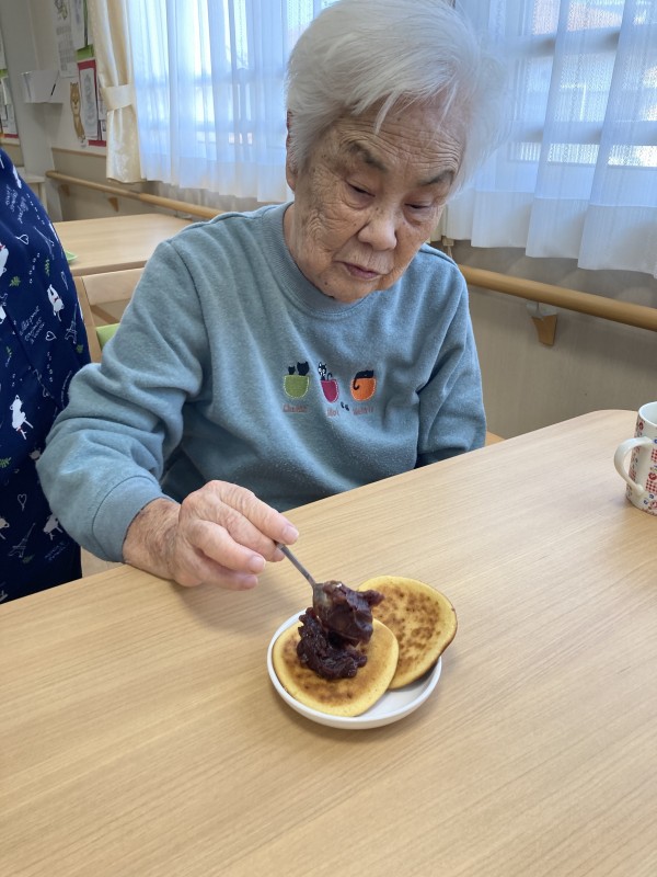 今日のおやつレクは皆様と一緒にどら焼きを作りました!
