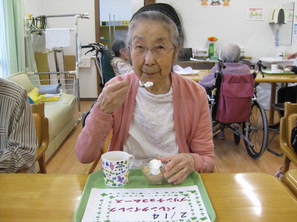 おやつの時間に、スタッフから手作りのプリンチョコムースを召し上がって頂きました!!