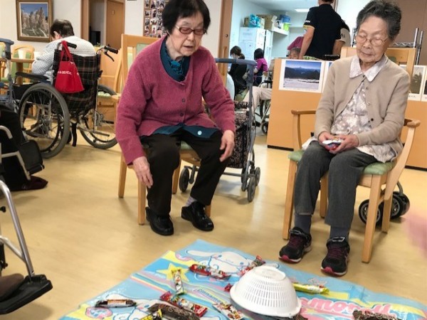 なんと!ザルを放って駄菓子をキャッチするその名も"ザル投げ"で大いに盛り上がりました(*^▽^*)