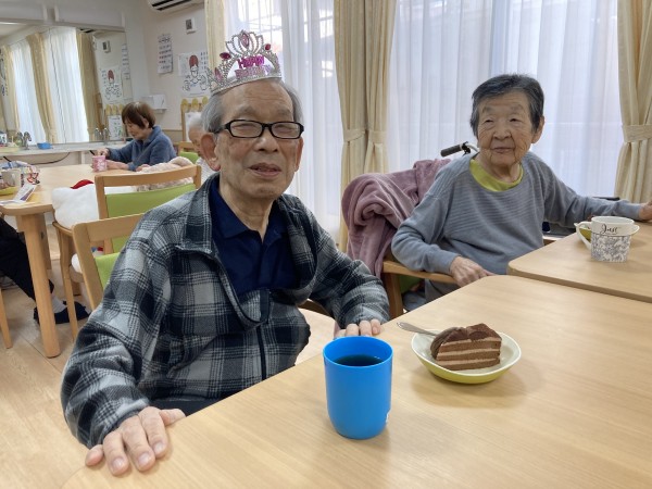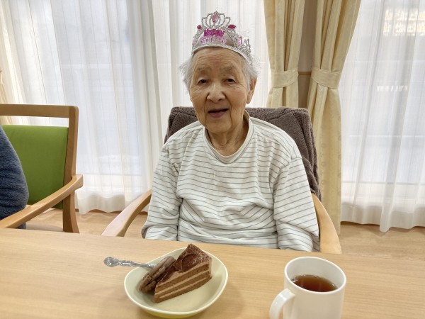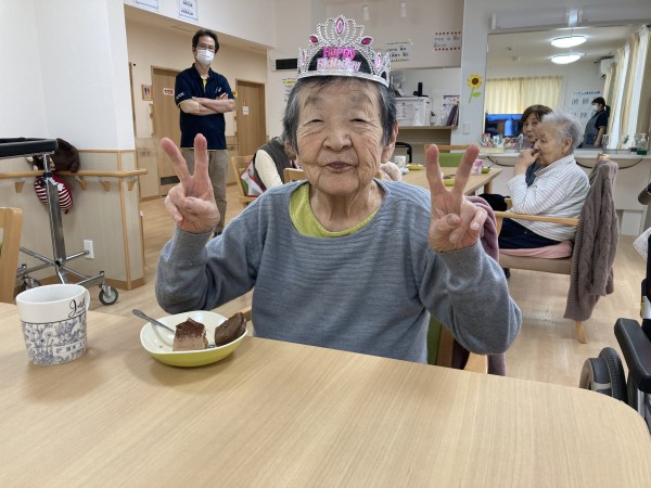 主役のティアラが好評だったので、他入居者様達にも被ってお祝いして頂きました(*´▽`*)