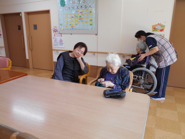 隣の方が編み物をされているのを仕上がりが楽しみとご覧になられています(^^)/