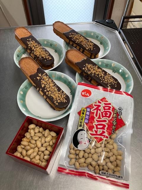 豆まきの後は「こん棒」の形をしたチョコクッキーサンド皆さんで召し上がりました。