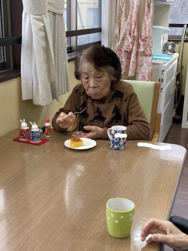本日のティータイムにて『かぼちゃのプリンケーキ』を