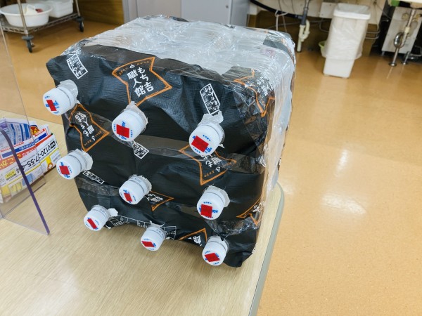 今回はこちらになります。積み重なったペットボトルがあり、皆様には1人ずつ蓋をとっていきます。その中のドクロマークを引いたら負け!!というルールでおこないました