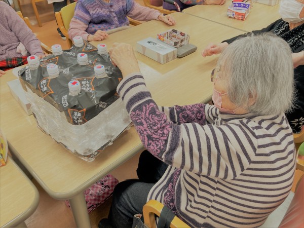 ペットボトル蓋は所々、緩かったり硬かったりと二通りあります。もちろんどこにあるのか分からないから、引くのもちょっと一苦労。とは言え、手首の運動にもなりますので、頑張って開けてる方もいらっしゃいました♪