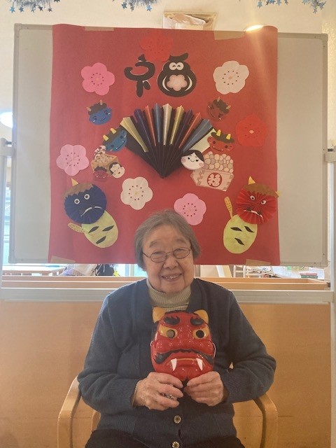 一致団結した結果、鬼退治成功( •̀ ω •́ )✧ 鬼のお面をはぎ取り、満面な笑み[]~( ̄▽ ̄)~* お見事~§(* ̄▽ ̄*)§
