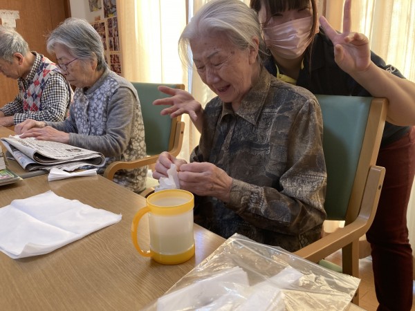 皆様真剣な表情でお花を作って頂きました(*^-^*)