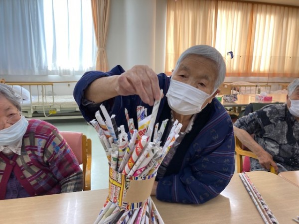 チラシを巻いて作った棒を