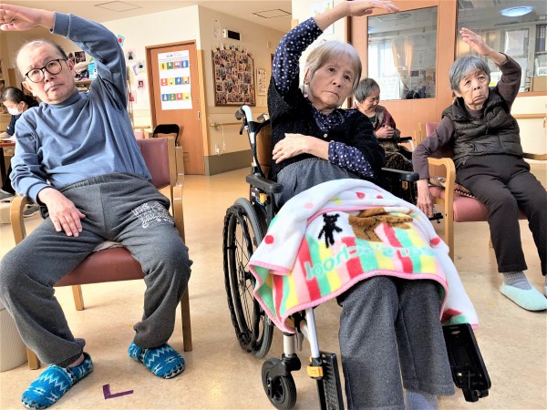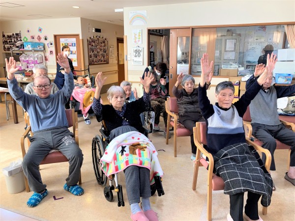 2月末日の午後、リモート体操教室が開催されました。岡田先生の元気な掛け声に合わせ、体操しています!